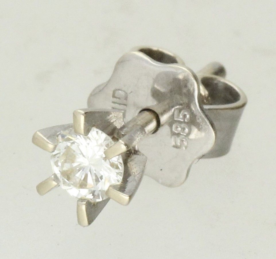 Enkelt solitaire ørestik udført af 14 kt. hvidguld fattet med en brillant på ca. 0.12 ct. Vægt: ca. 0,58 gr.