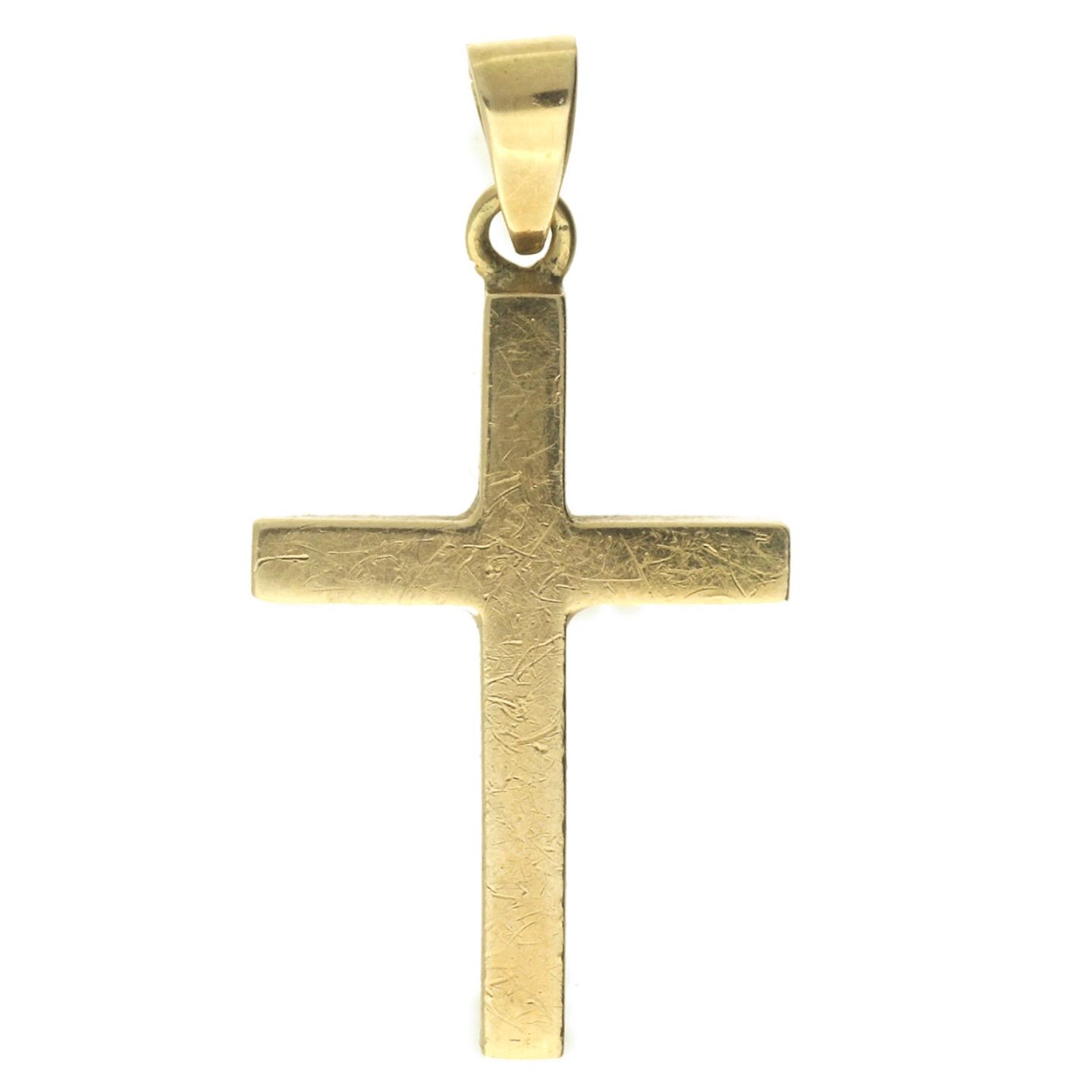 Kors udført af 14 kt. guld. L. inkl. øsken: ca. 29 mm. Vægt: ca. 2,97 gr.