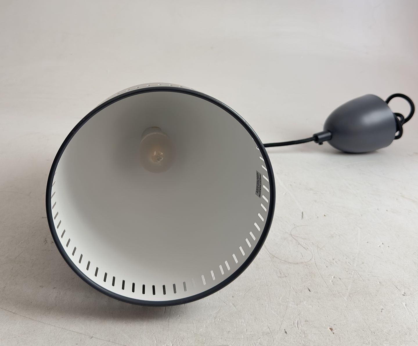 Superliving - Dynamo pendel udført af grålakeret metal, monteret med sort stofledning. H. 25 Ø. 19 cm.