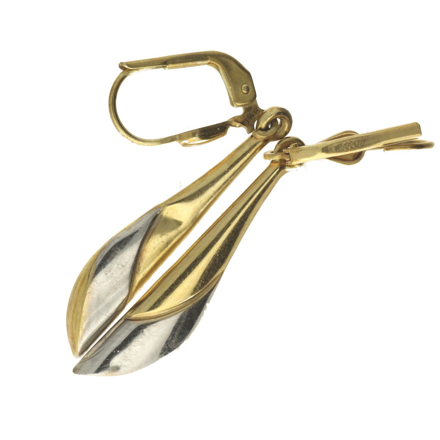 Par øreringe udført af tofarvet 8 kt. guld. L. ca. 4,2 cm. Vægt: ca. 1,50 gr.