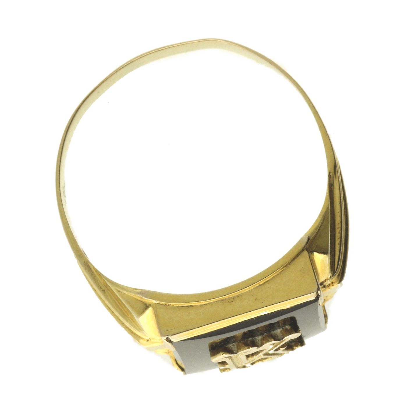 Herrering udført af 10 kt. guld fattet med sort sten. Ringstr: 65. Vægt: ca. 5,22 gr.