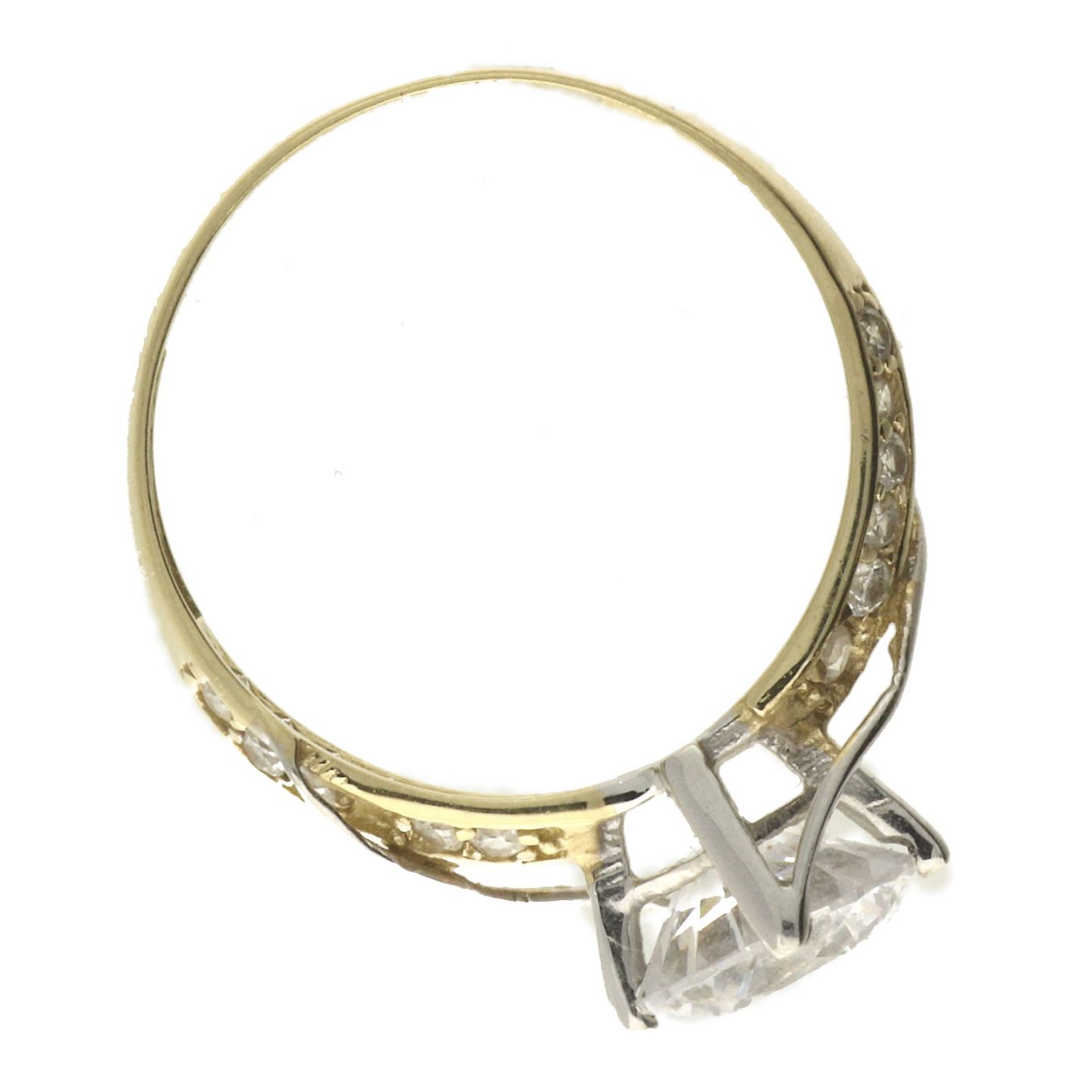 Ring udført af 14 kt. guld fattet med klare sten. Ringstr: 56. Vægt: ca. 2,78 gr.