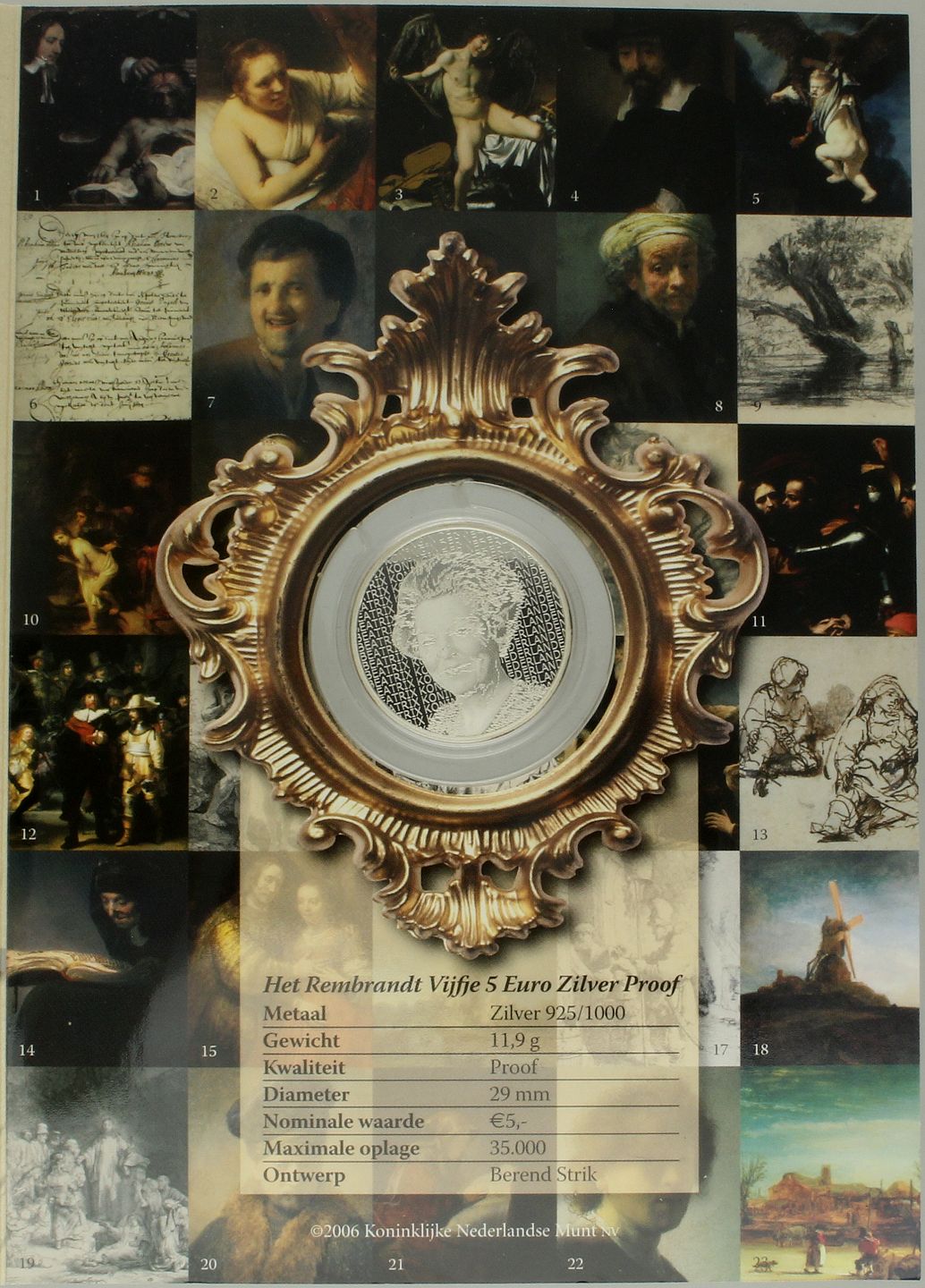 Holland - Møntsæt - 5 Euro - PROOF - 2006 - Sølv - "Het Rembrandt Vijfje"