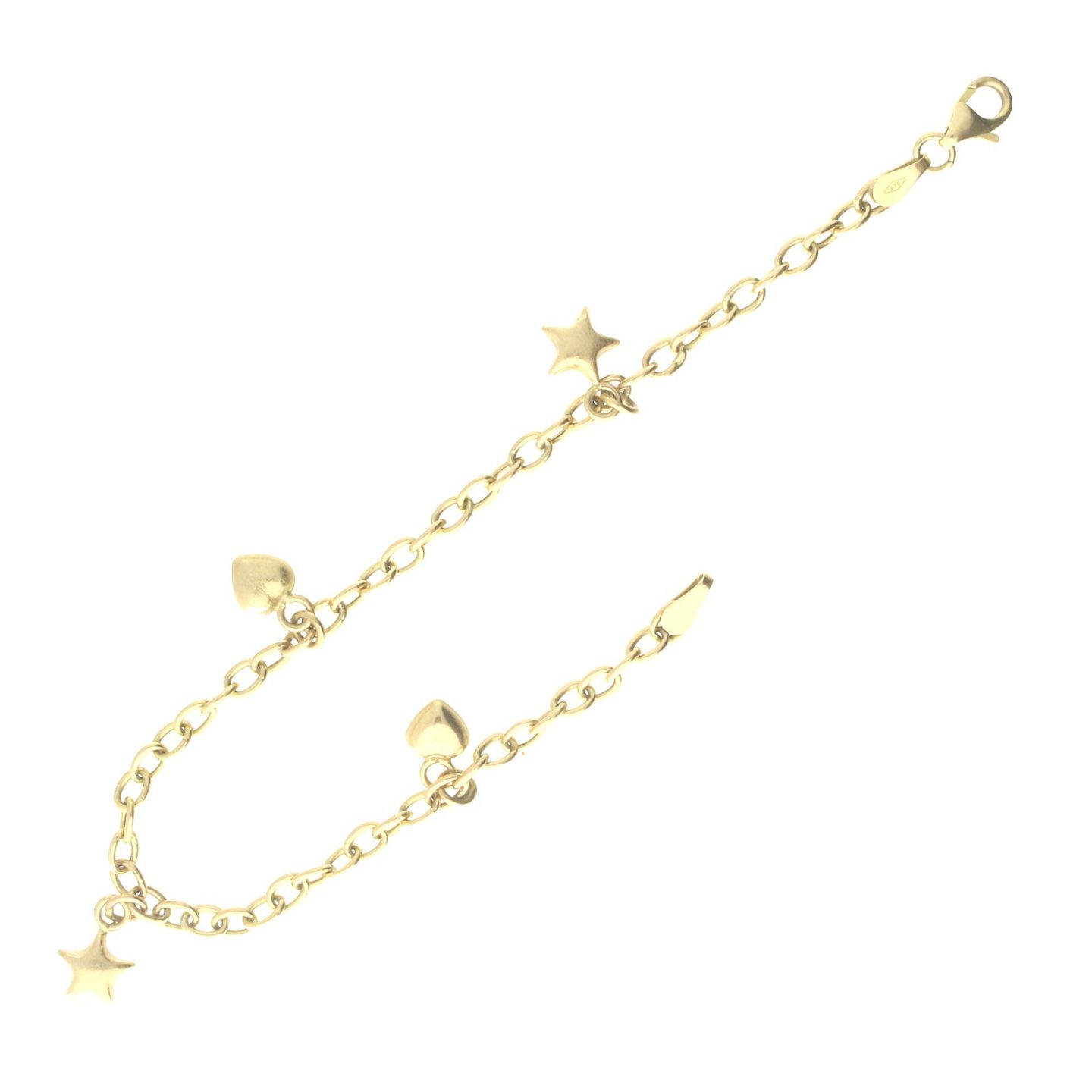Armlænke udført af 9 kt. guld prydet med hjerte og stjerne charms. Stemplet 375. L. 19 cm. Vægt: ca. 3,42 gr.