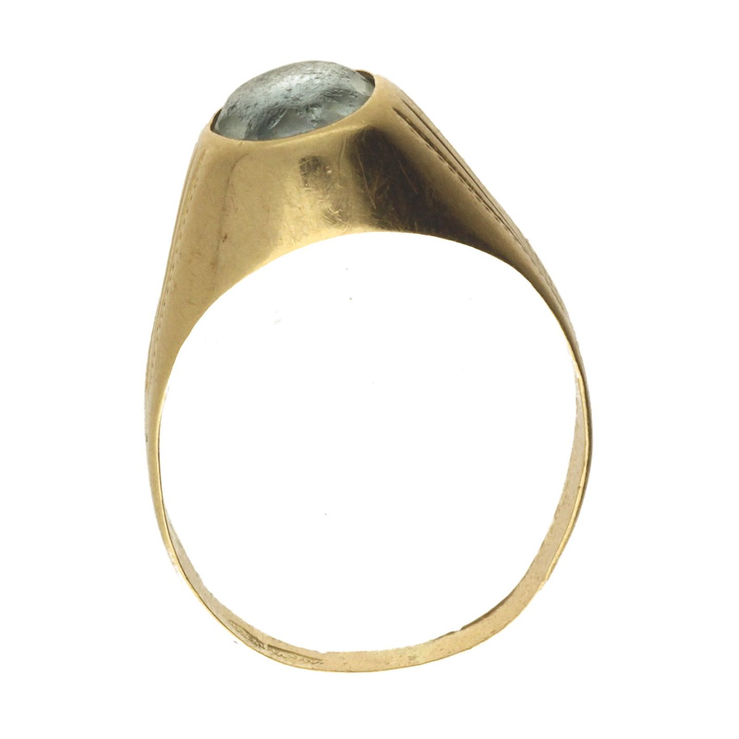Ring udført af 18 kt. guld fattet med blå sten. Ringstr: 52. Vægt: ca. 2,82 gr.