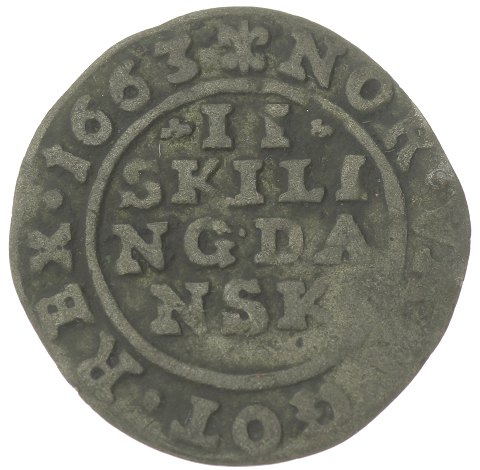 Frederik III - 2 skilling - 1663 - Sieg 18.5, H 132B