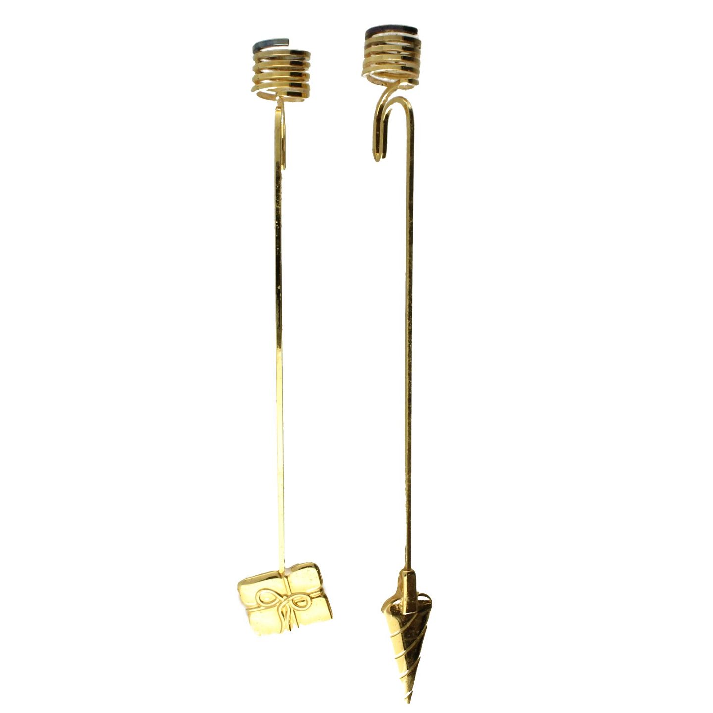 Georg Jensen - To lyseholdere fra 2000 og 1995 i form af gave og kræmmerhus udført af forgyldt metal.