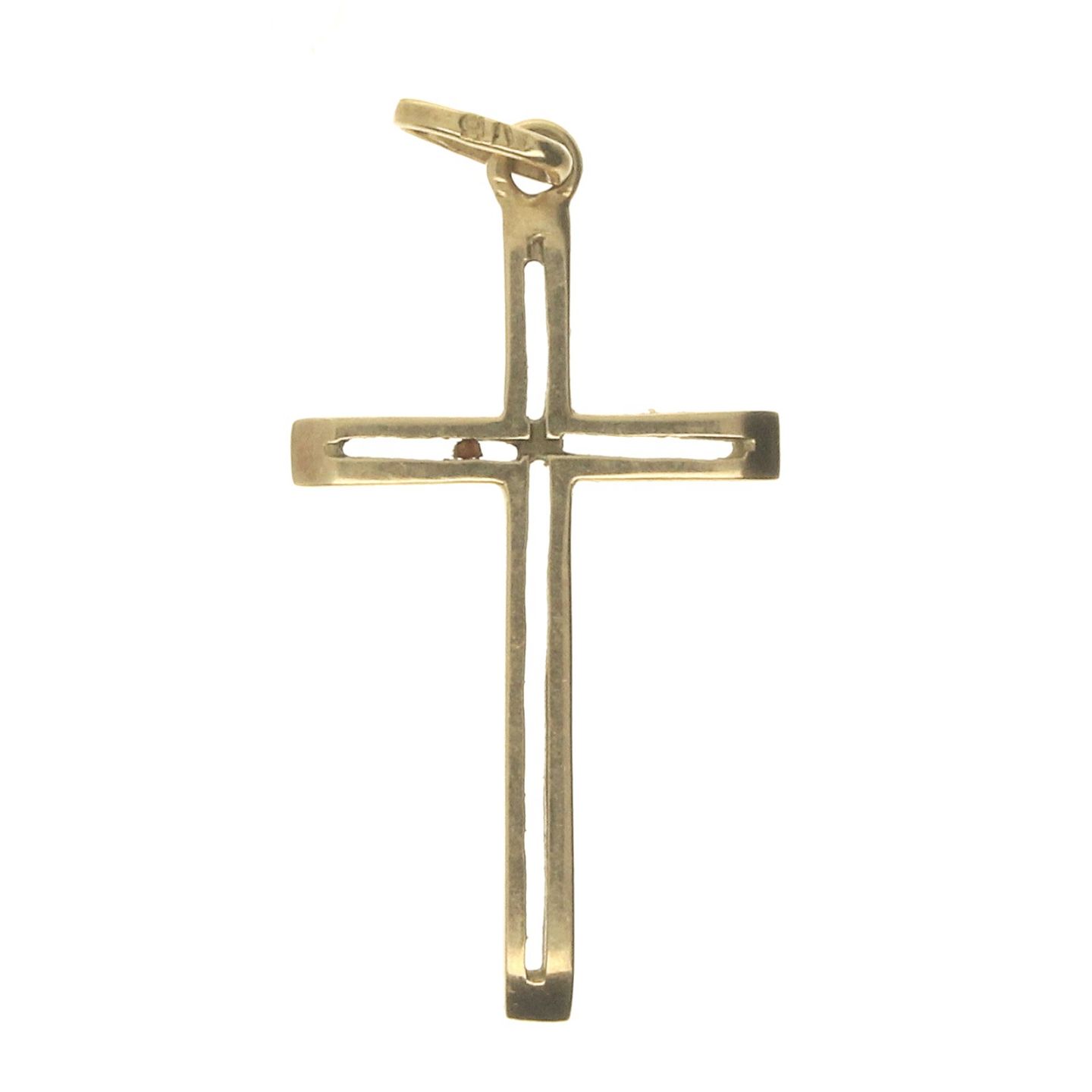 Kors udført af 14 kt. guld. L. inkl. øsken: ca. 31 mm. Vægt: ca. 0,95 gr.