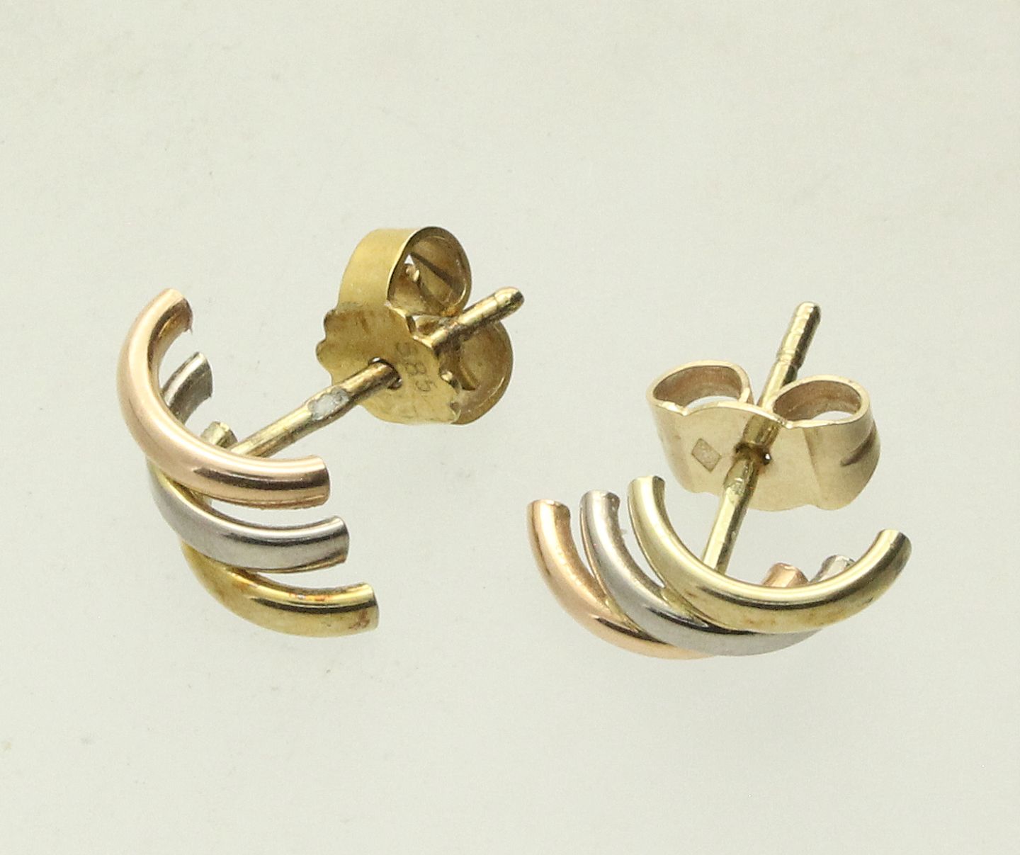 Par ørestikker udført af tofarvet 14 kt. guld, en lås af 18 kt. guld. Samlet vægt: ca. 1,23 gr.