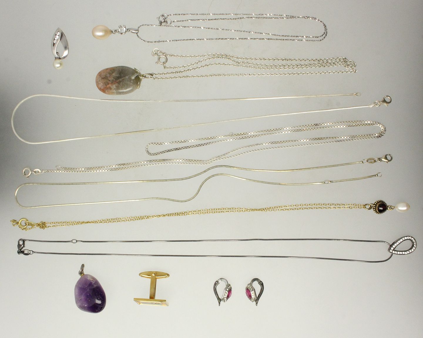 Derudover en manchetknap og halskæde af gulddoublé. Samt to vedhæng.
