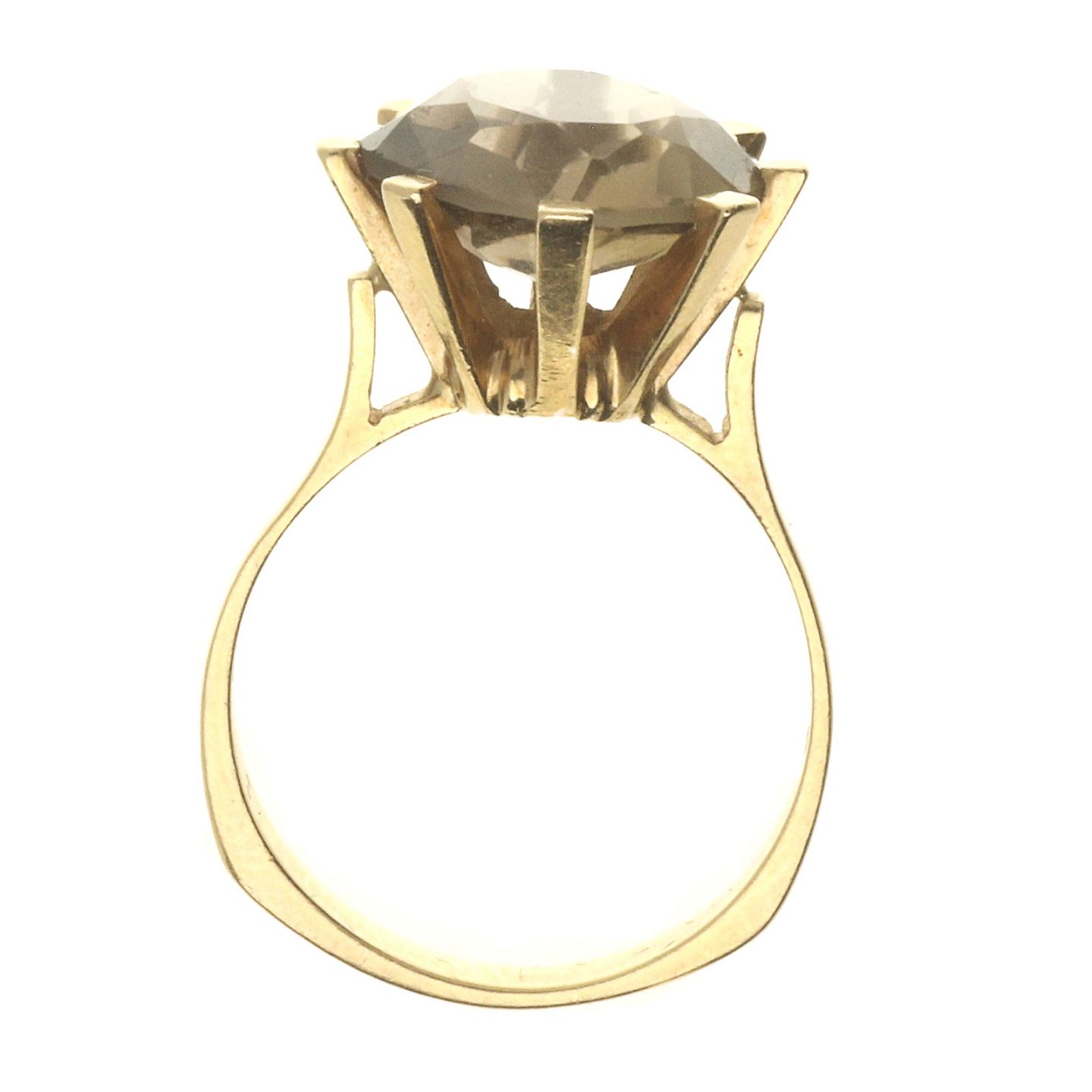 Cocktailring udført af 14 kt. guld fattet med brun sten. Ringstr: 56. Vægt: ca. 4,59 gr.