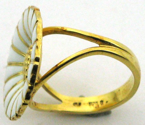 Georg Jensen - Marguerit / daisy ring udført af forgyldt sterling sølv og hvid emalje. Ringstr: 49. Vægt: ca. 3,85 gr.