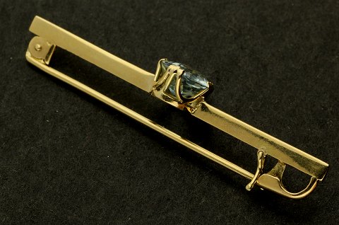 Broche udført af 14 kt guld fattet med blå akvamarin.