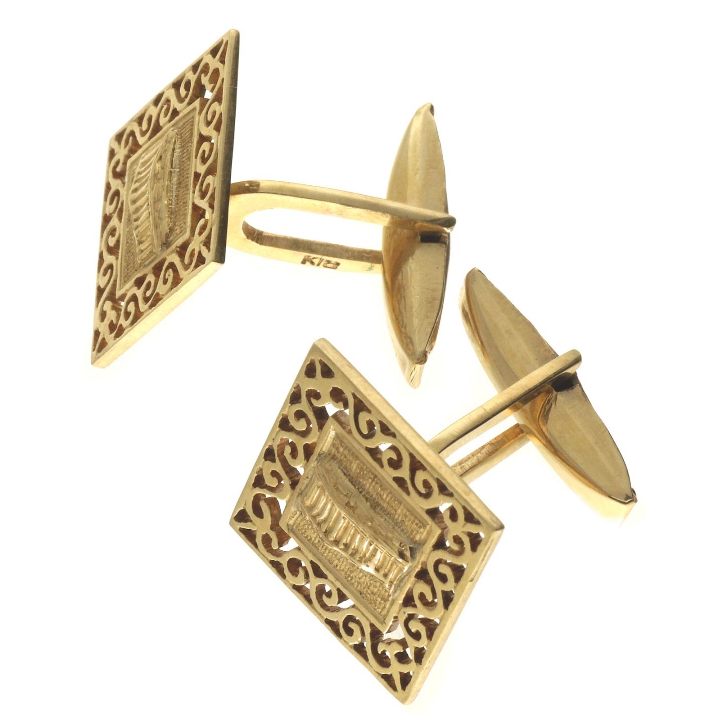 Par manchetknapper udført af 18 kt. guld. B. ca. 17 mm. Vægt: ca. 11,65 gr.