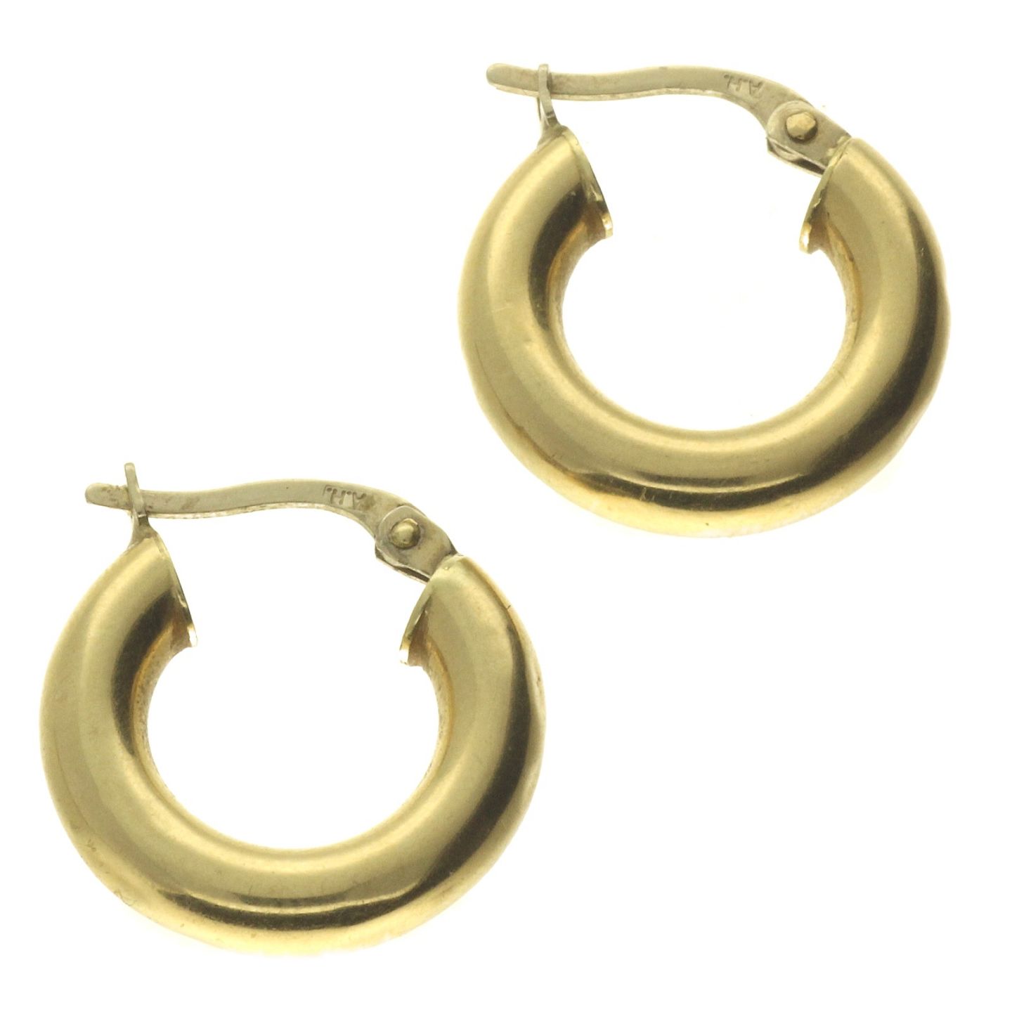 Par creoler udført af 18 kt. guld. Ø. 18 mm B. 4 mm. Vægt: ca. 2,58 gr. En creol med lille bule.