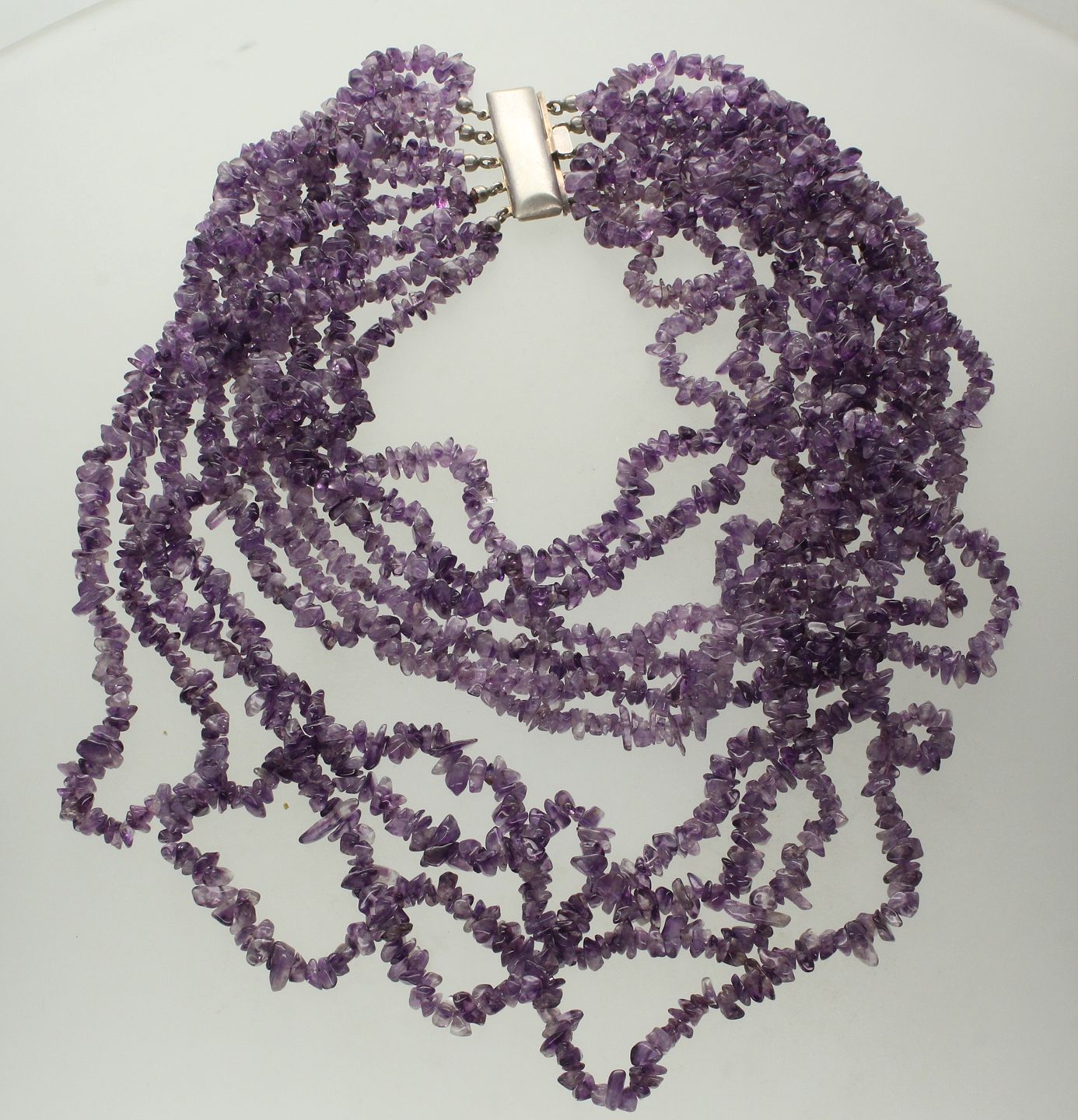 10-radet ametyst halskæde med lås af sterling sølv. L. 44 cm. Samlet vægt: ca. 201 gr.