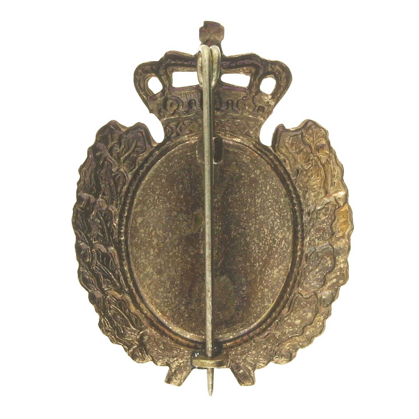 Politiemblem / politimærke til montering på kasket udført af forgyldt metal prydet med grøn emalje. L. ca. 4,7 cm. Af nyere dato.