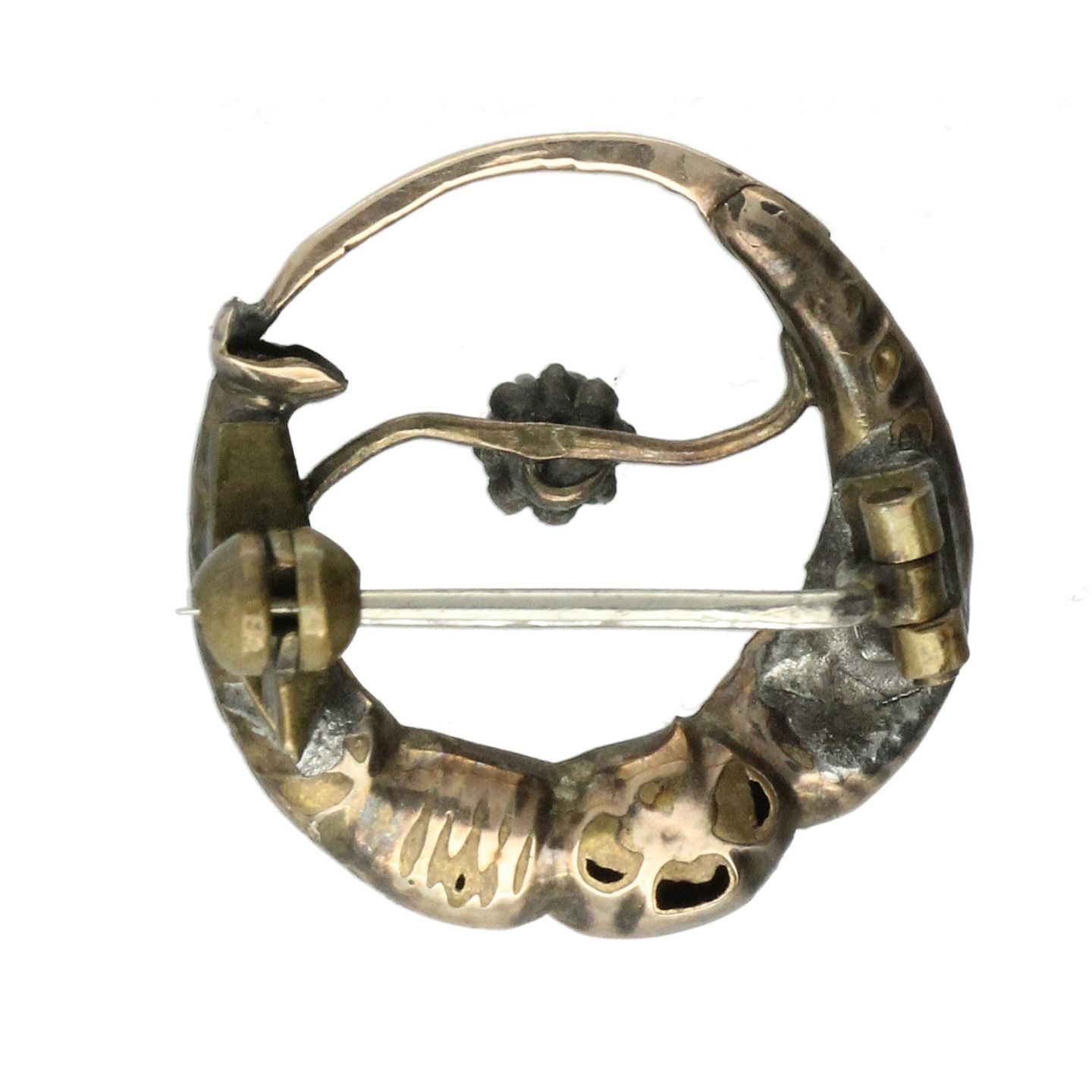 Ørering/broche af guld - formodentlig 14kt. fattet med rød sten