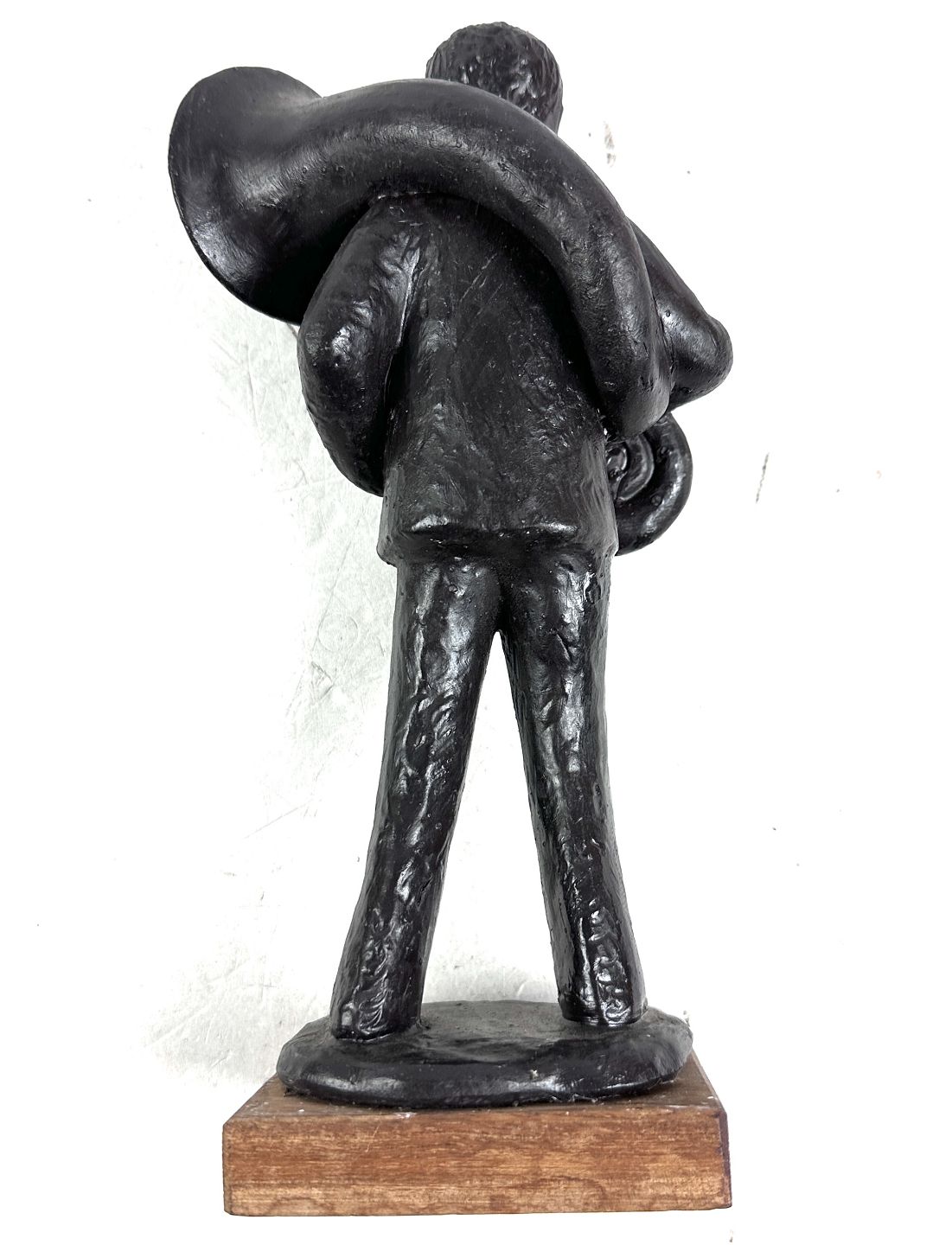 Figuren er fremstillet af et kunstmateriale og er monteret på træfod.