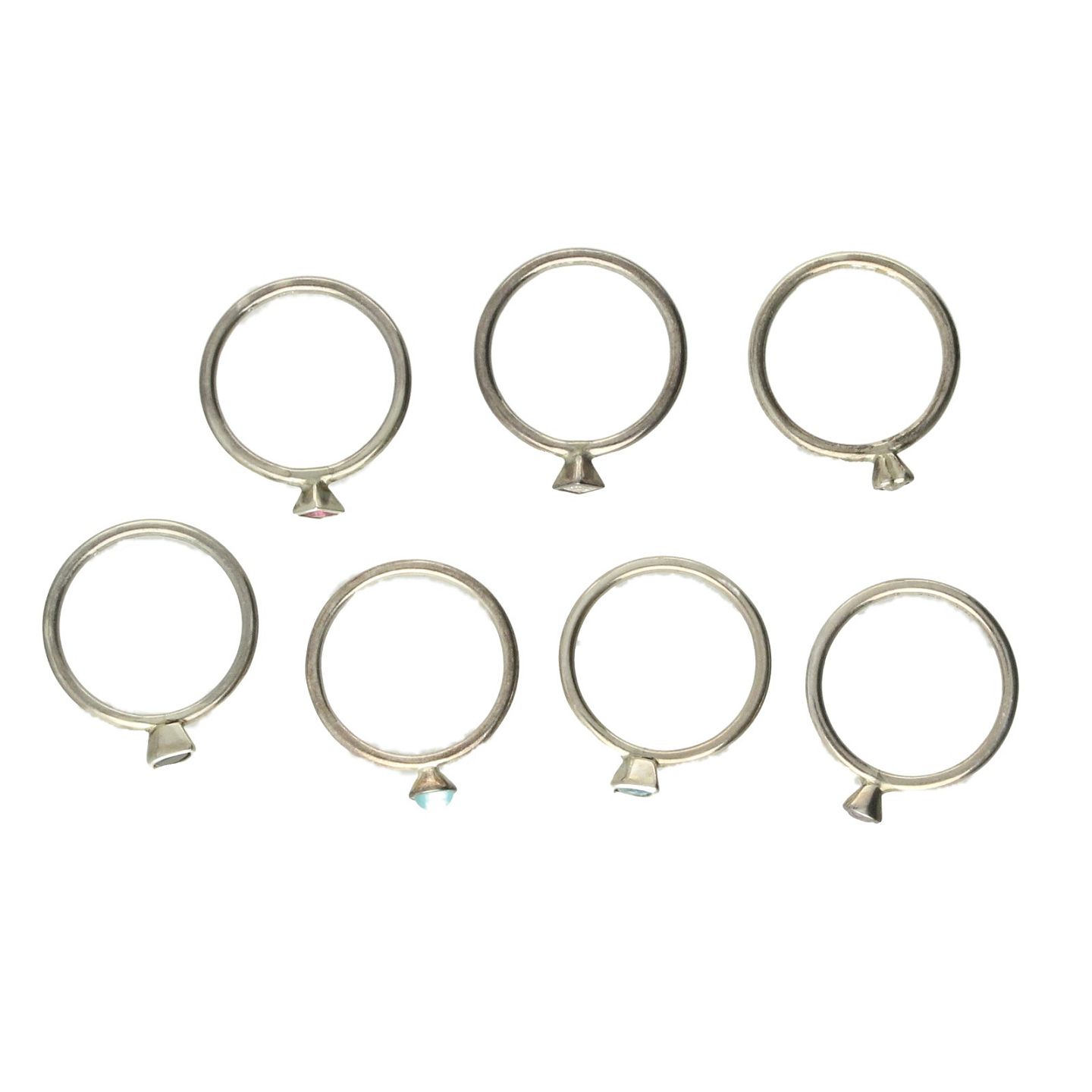 Syv spinning ringe udført af sterling sølv prydet med diverse sten. Ringstr: 57. Samlet vægt: ca. 12,7 gr.