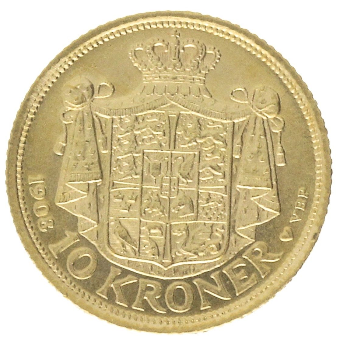 Frederik VIII - 10 kroner 1908 - GULD - Sieg 2, H 2