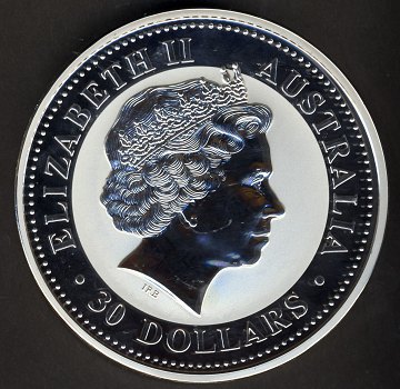 Australien, 30 dollars SØLV 2000 - Kookaburra 1 kg FINSØLV - Sjælden