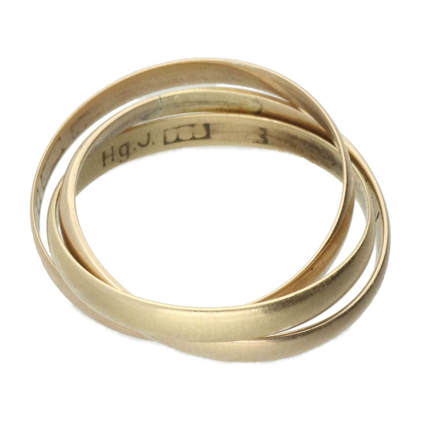 Tre-delt ring udført af 14 kt. guld. Ringstr: 56. Vægt: ca. 2,89 gr.