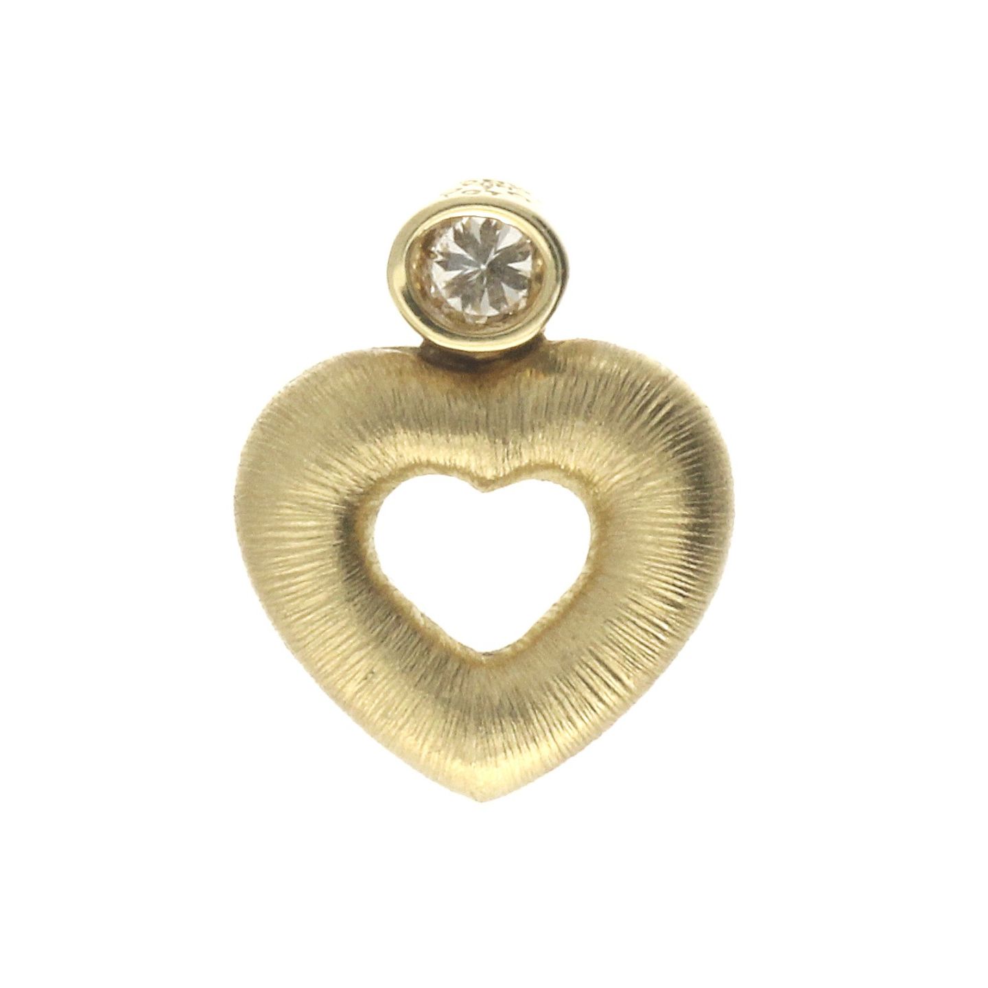 Hjertevedhæng udført af 14 kt. guld fattet med en brillant på ca. 0.10 ct. L. 1,5 cm. Vægt: ca. 2,68 gr.