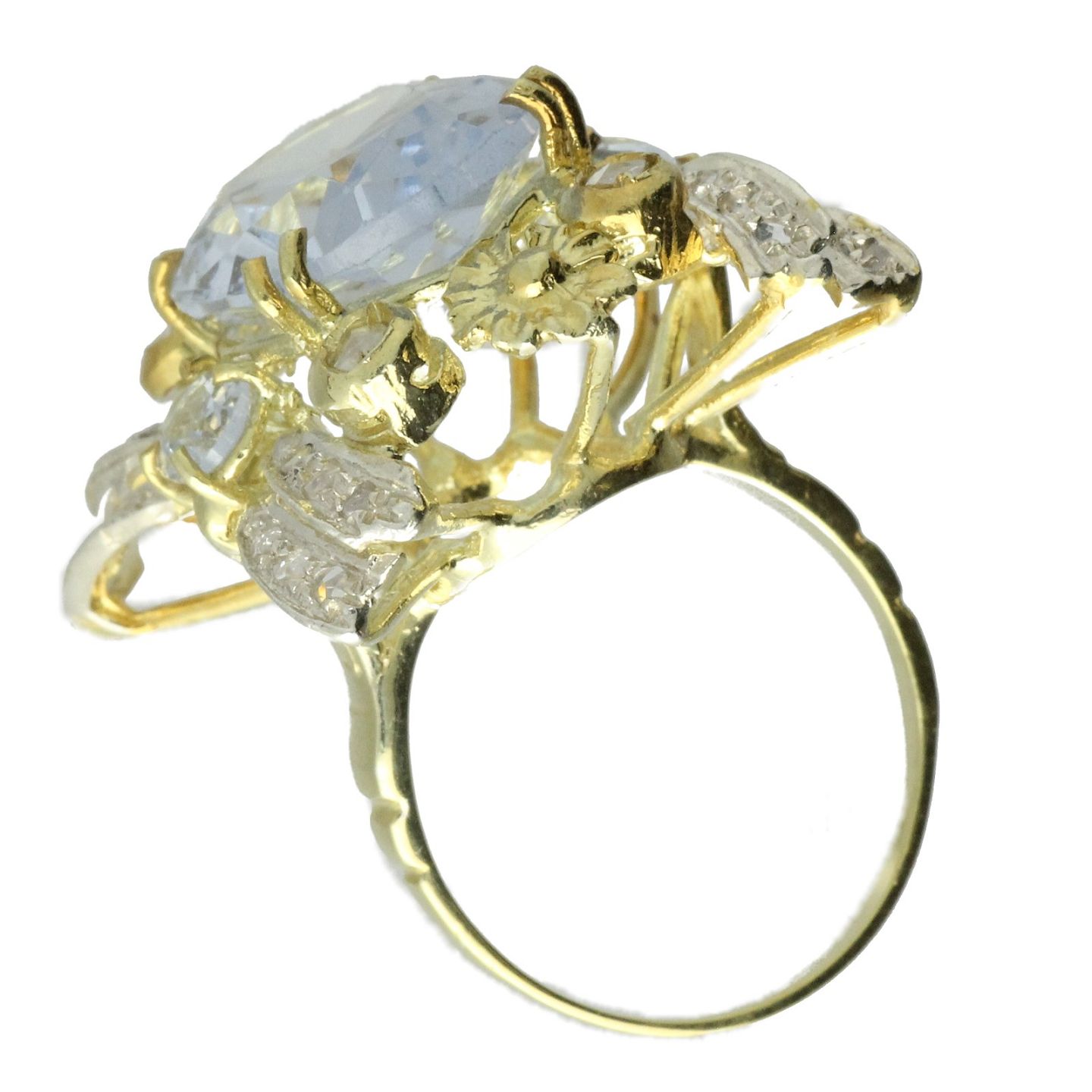 The rarity cornér - Ring udført af 9 kt. guld fattet med en blå topas samt talrige brillanter på i alt ca. 0.40 ct. Klarhed: SI. Farve: H. Ringstr: 54. Vægt: ca. 9,68 gr.