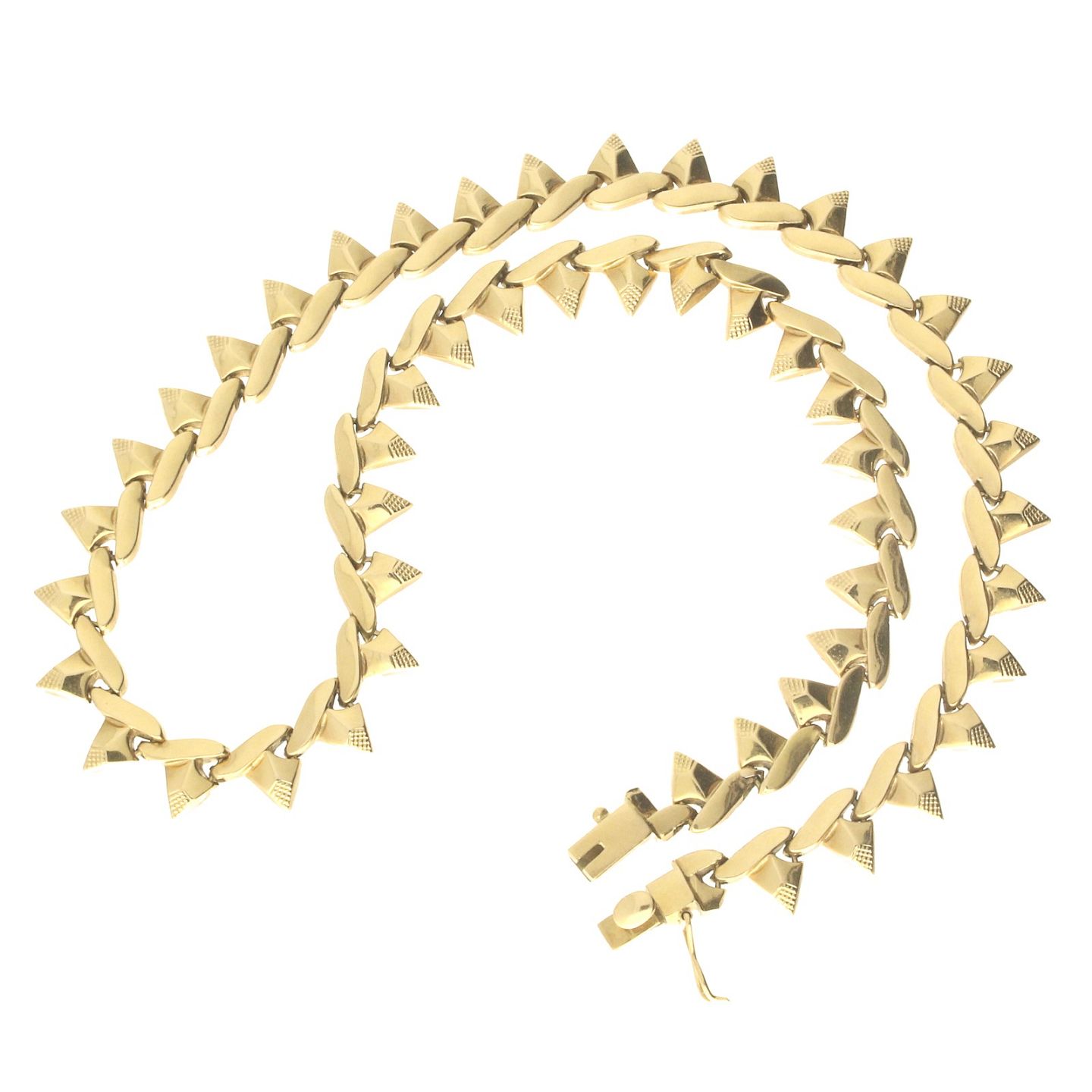 Leddelt halskæde udført af 18 kt. guld. L. 44,5 cm. Vægt: ca. 24,56 gr.