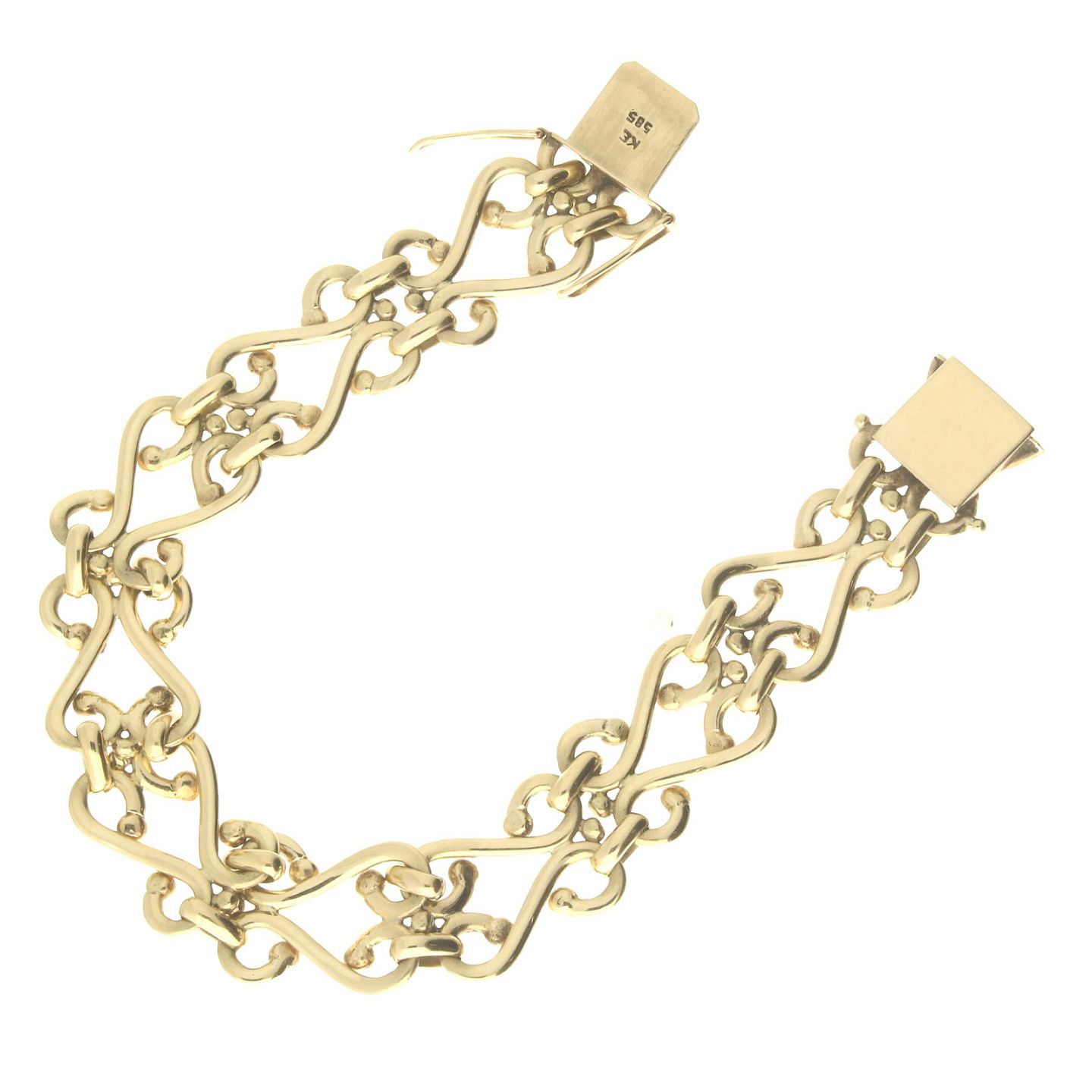 Leddelt armlænke udført af 14 kt. guld. L. 19,5 cm. Vægt: ca. 29,38 gr.