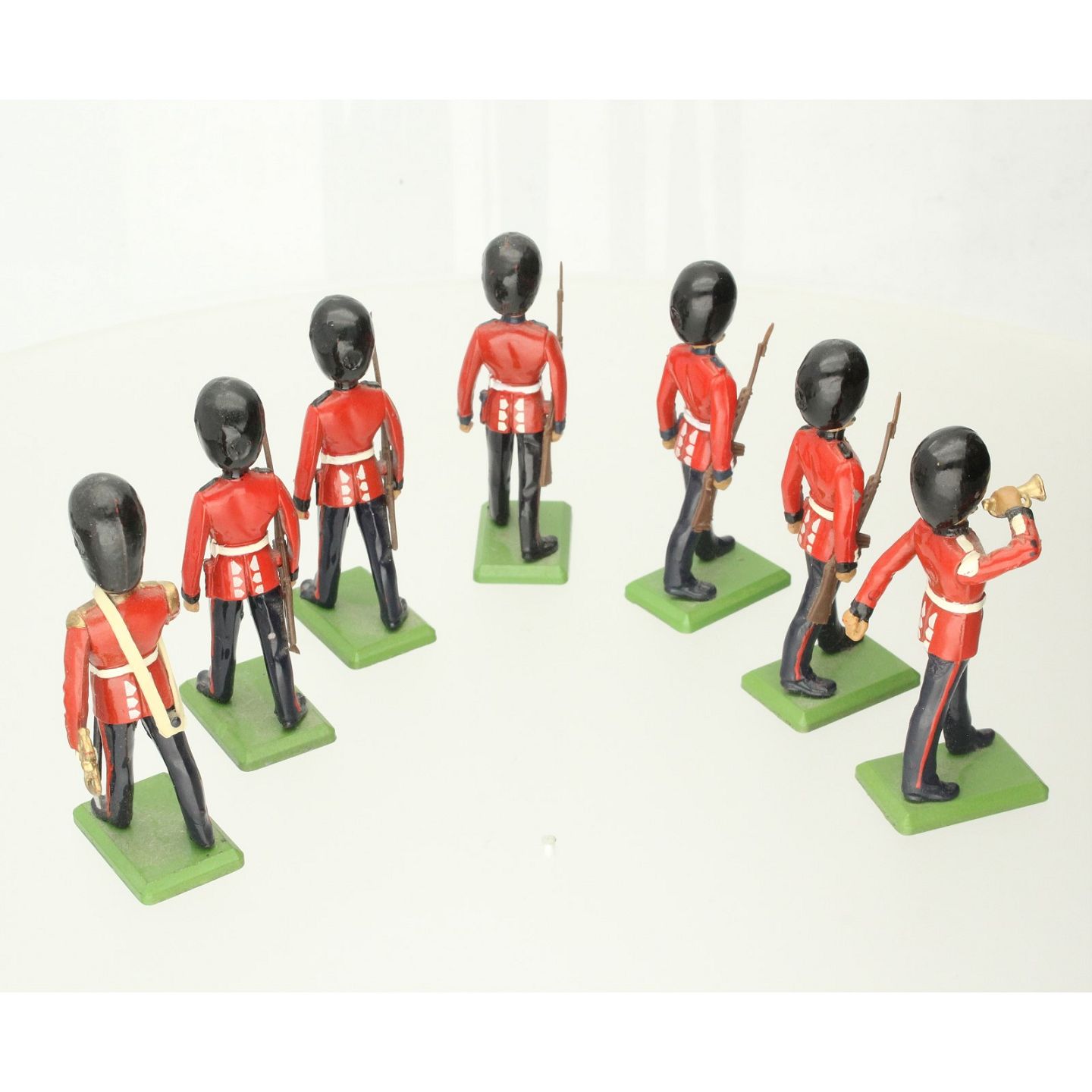 Britains Ltd. England - Syv engelske gardere udført af bemalet metal. H. ca. 6,5 cm.