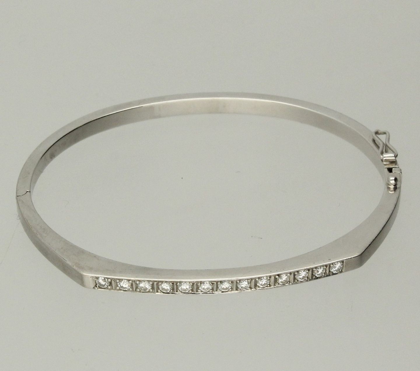 Brillantarmring udført af 14 kt. hvidguld, fattet med 13 brillanter på i alt ca. 0.52 ct. Ø. 56 mm. Vægt: ca. 10,89 gr.