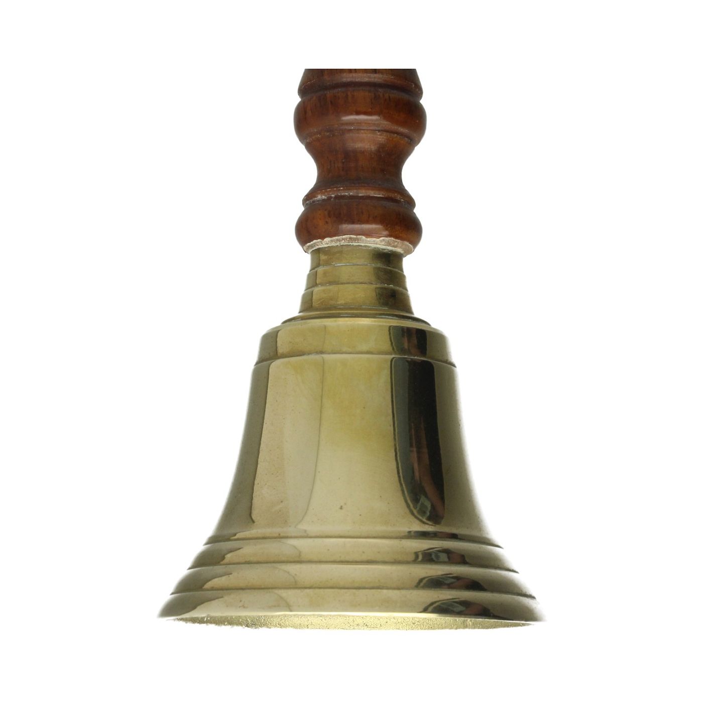 Bordklokke af messing med skaft af træ. H. ca. 21 cm.