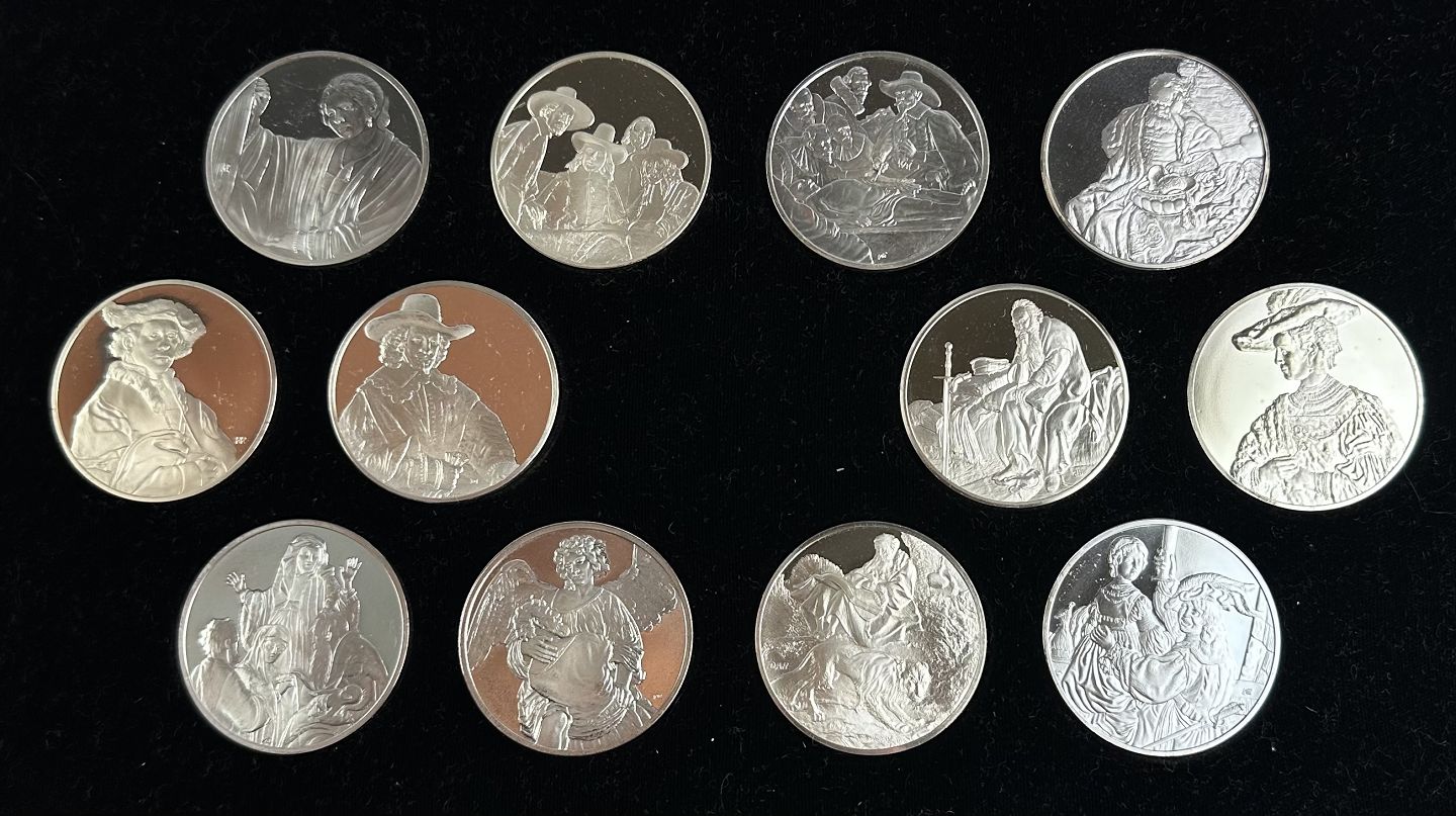Rembrandt - 50 medailler af sterlingsølv, vægt ialt 3315 gr