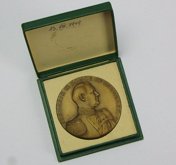 Erindringsmedaille af bronze, præget i anledning af Frederik IX´s 50 års fødselsdag d. 11. marts 1949. Ø. 55 mm.