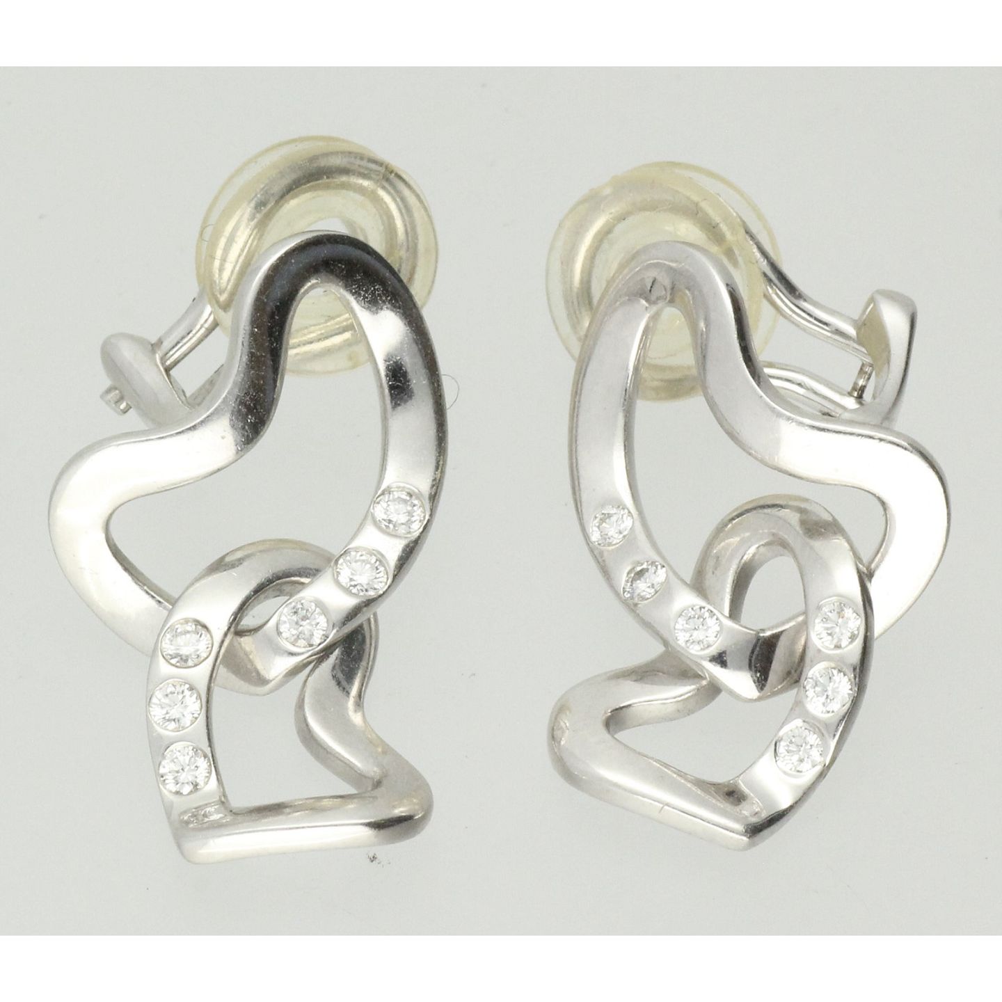 Regitze Overgaard for Georg Jensen - Par interlocking hearts / sweet heart øreclips udført af 18 kt. hvidguld fattet med seks brillanter på i alt ca. 0.24 ct. Top Wesselton (G) VS1. Mål: 2,5 x 1,1 cm. Vægt: ca. 8,43 gr.