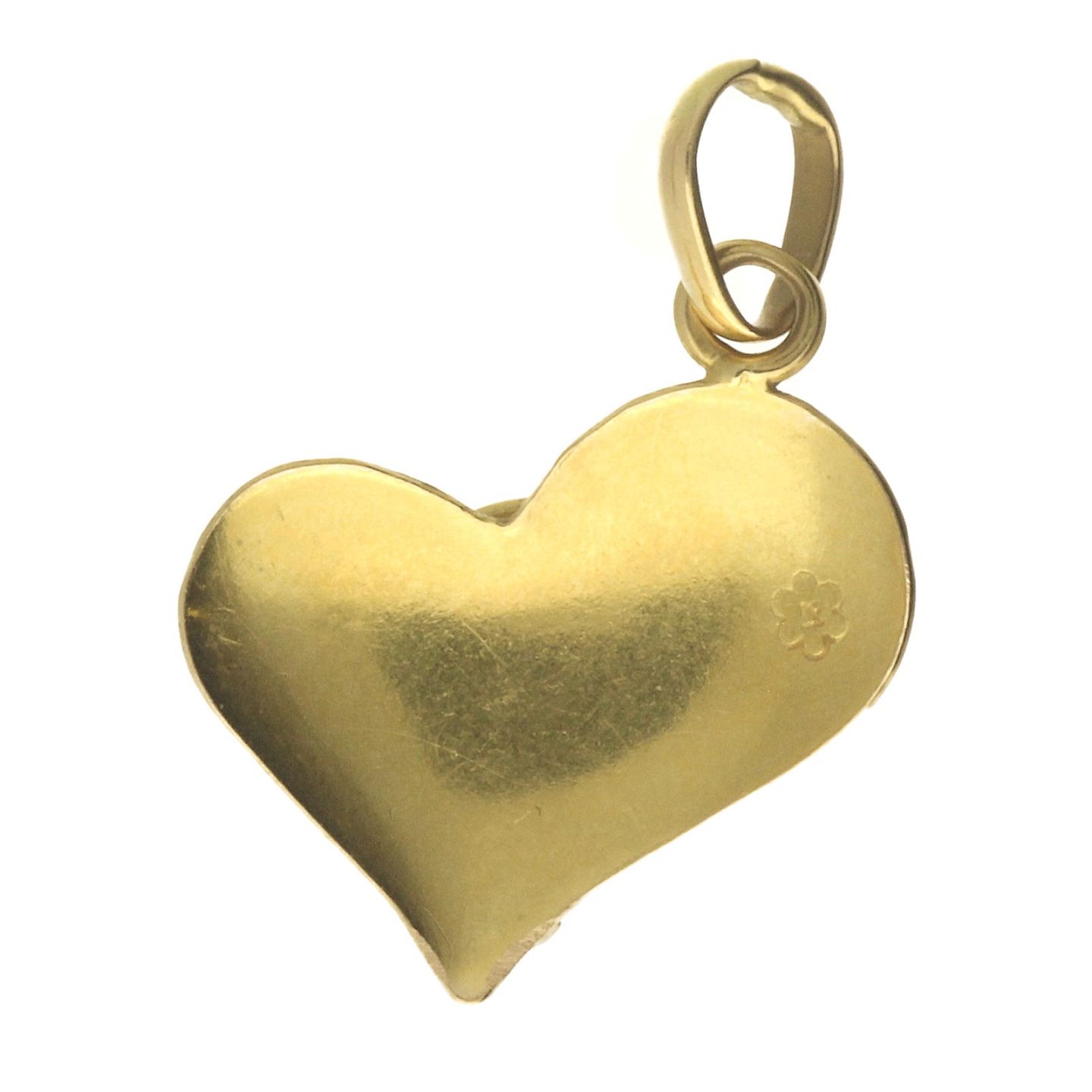 Hjertevedhæng udført af 21 kt. guld. L. inkl. øsken: 2,7 cm. Vægt: ca. 2,12 gr.