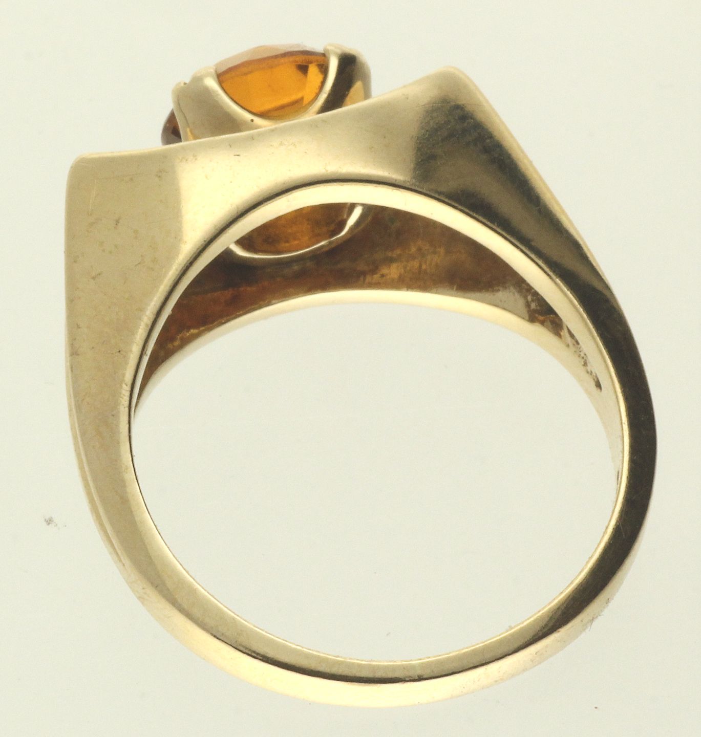 Ring udført af 14 kt. guld fattet med orange sten. Ringstr: 55. Vægt: ca. 7,21 gr.