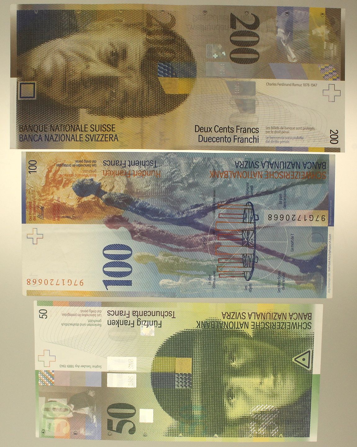 200-franc-seddel, 100-franc-seddel samt 50-franc-seddel