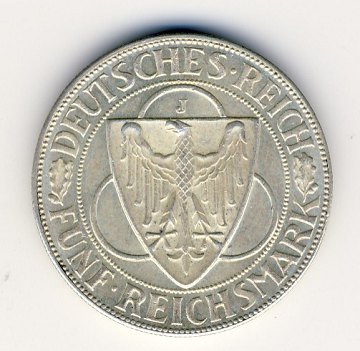 Weimar, 5 Mark 1930J, Der Rhein Deutschlands Strom - Nicht Deutschlands Grenze - Rhinen Tysklands flod ikke Tysklands grænse!!!
