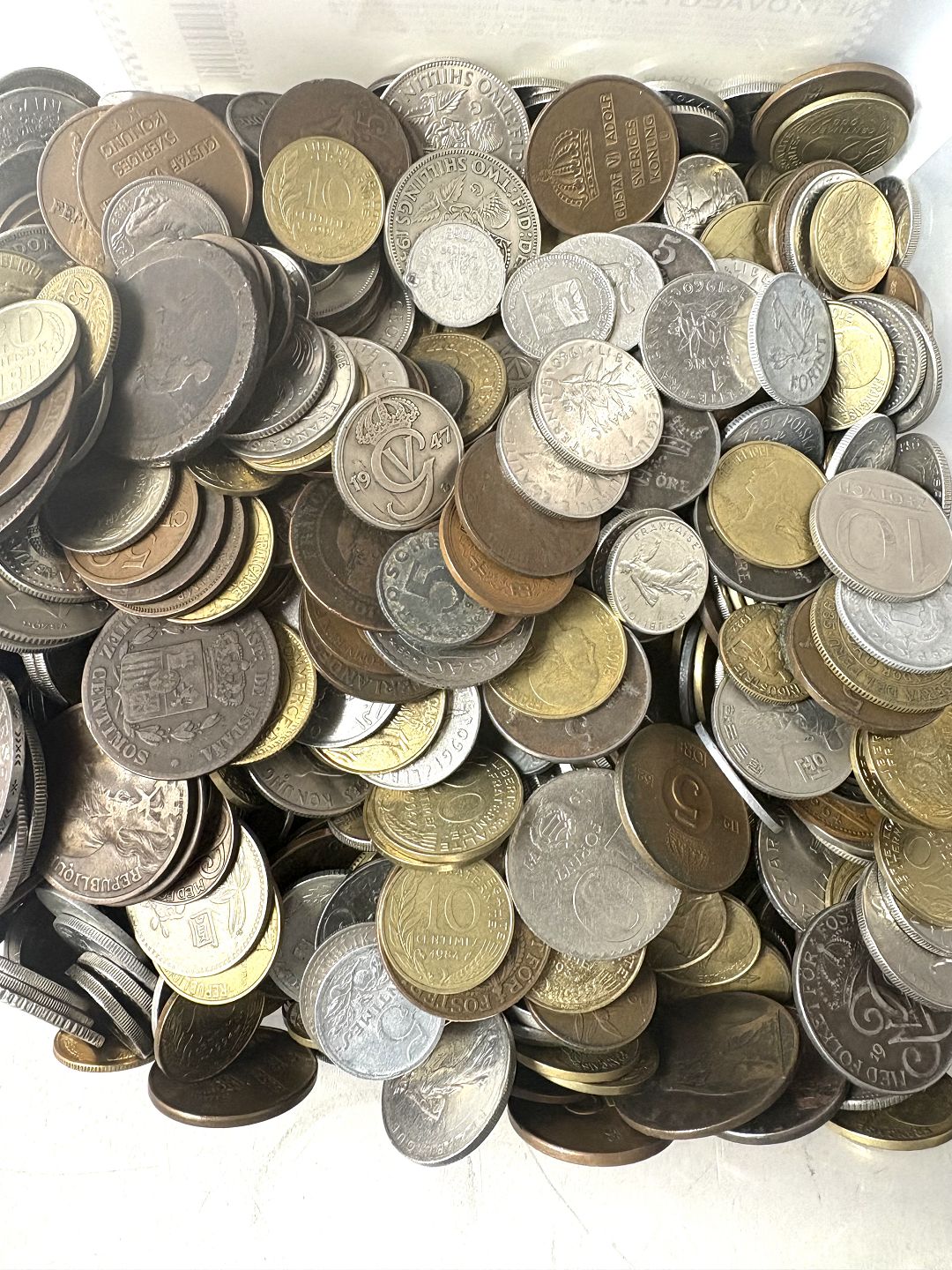 Lot usorterede mønter fra hele verden (3690 gram)