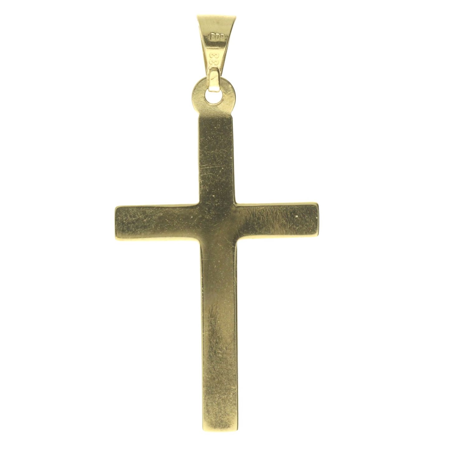 Kors udført af 8 kt. guld. L. inkl. øsken: ca. 3,2 cm. Vægt: ca. 0,60 gr.