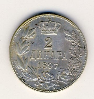Serbia, 2 dinar 1897
