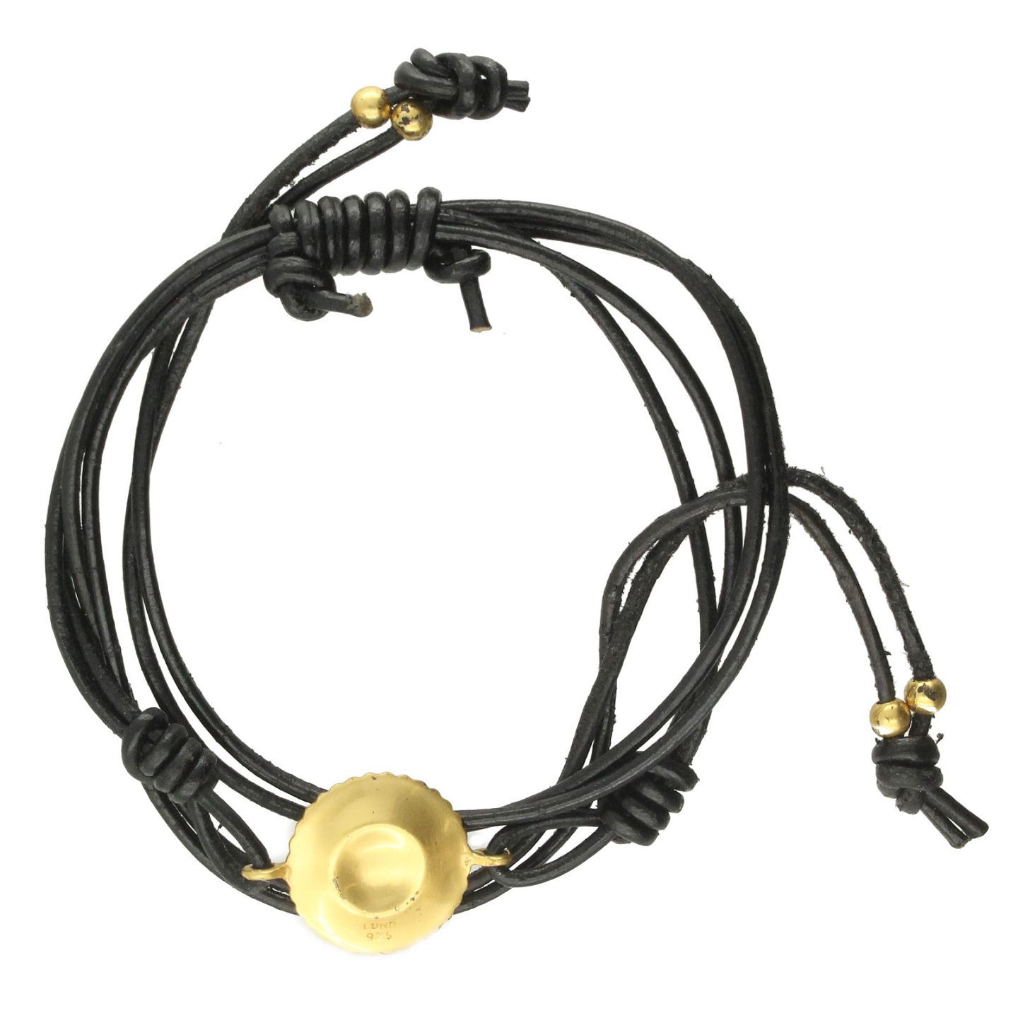 Lund - Marguerit halskæde af forgyldt sterling sølv, integreret på snor af sort læder. Justerbar størrelse.