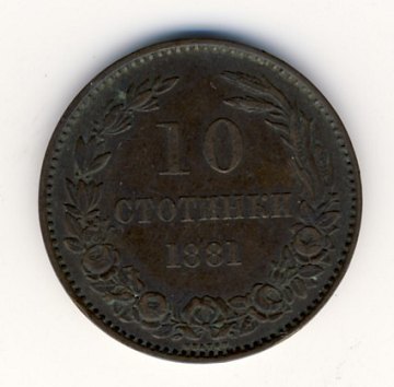 Bulgaria, 10 stotinki 1881