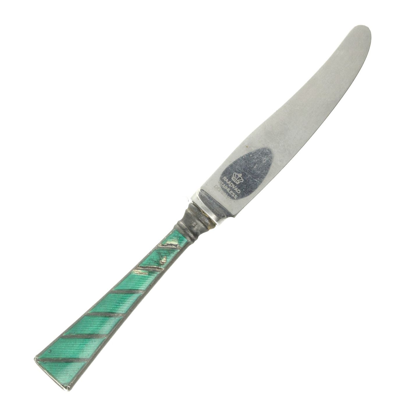 Lille smør kniv med skaft af sterlingsølv med emalje. L. ca. 11,5 cm. Vægt: ca. 13,5 gr.