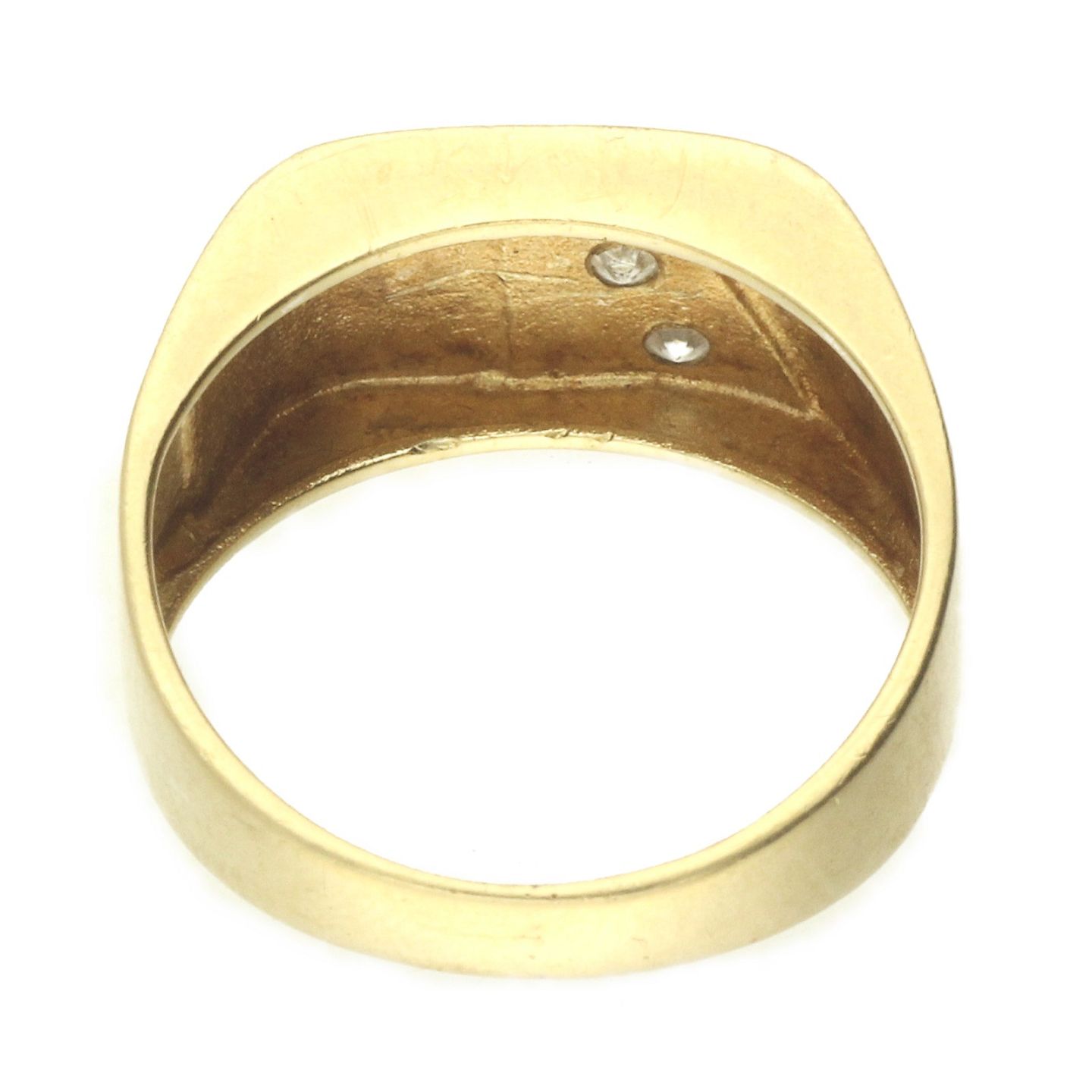 Ring udført af 14 kt. guld fattet med klare sten. Ringstr: 59. Vægt: ca. 4,66 gr.